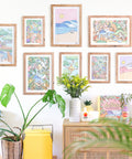 The following 8 art prints are included in this gallery wall: Sydney, Hope, A Beautiful Day, Timing Sets, Dreaming, Wonderland, Reef and Rainbow)