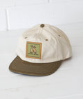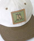 A couple of kangaroos having a biffo stitched onto a classic two-tone dad hat. Featuring a natural top, khaki brim, and exposed stitching, it’s topped off with a sweet patch that’s all about celebrating our boxing icons.