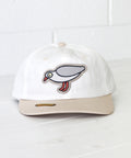 Who’s ready for a snack? This two-tone sand and white coloured dad hat captures a seagull’s dream moment—he’s spotted a chip, and he’s bloody goin for it! With a seagull patch on the front and a cheeky chip on the brim, it’s a classic hat for beachside fish and chip sessions.