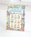 Brentos prints are printed on museum-grade 310gsm (very thick) paper with a creamy texture that pairs magically with Brentos' signature pastels. Printed, hand-signed and dated right here by us in our art studio using pigment based inks. Every seek and find print includes a matching companion card listing the species to find and their conservation status.