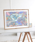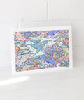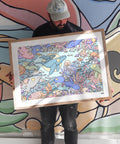 Explore Australia's glistening coral reefs in this unique seek and find art print! It includes a complimentary companion card that shows you which species you need to find in the artwork, the number of individual animals and their conservation status. It serves as a fun and engaging way for all ages to learn about the importance of wildlife conservation. Printed on museum-grade fine art paper and hand-signed by Brentos.