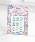 Every seek and find print now includes a companion card that shows you which species you need to find, the number of individual animals and their conservation status.