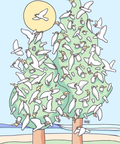 A common scene across the Australian coastline – Norfolk pine trees filled with flocks of screaming cockatoos.