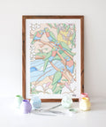 Brentos prints are printed on museum-grade 310gsm (very thick) paper with a creamy texture that pairs magically with Brentos' signature pastels. Printed, hand-signed and dated right here by us in our art studio using pigment based inks.