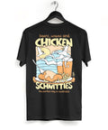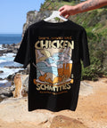 It's a summer stunner, the waves are 4ft and a light offshore wind is keeping them glassy. You spend a solid day catching some fun ones and as you paddle in your mate yells out "pub?". Before you know it, you're parked on the deck of your beachside local with an ice cold pale ale and a steaming hot chicken schnittie, chips, salad and gravy. These are the summer pub feeds we live for and we had to celebrate them with an ode to the chicken schnittie. Get one on your torso before you get a schnittie in your torso.