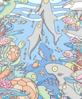 Endangered sea turtles glide peacefully through coral reefs and undersea pinnacles. An illustration adapted from Brentos' book Wild Australia. Also available in Landscape orientation here.