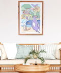 Brentos prints are printed on museum-grade 310gsm (very thick) paper with a creamy texture that pairs magically with Brentos' signature pastels. Printed, hand-signed and dated right here by us in our art studio using pigment based inks.