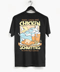 It's a summer stunner, the waves are 4ft and a light offshore wind is keeping them glassy. You spend a solid day catching some fun ones and as you paddle in your mate yells out "pub?". Before you know it, you're parked on the deck of your beachside local with an ice cold pale ale and a steaming hot chicken schnittie, chips, salad and gravy. These are the summer pub feeds we live for and we had to celebrate them with an ode to the chicken schnittie. Get one on your torso before you get a schnittie in your torso.