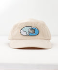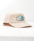 This creamy corduroy 5-panel hat features our classic surfing koala getting absolutely pitted mid-tube. Classic.