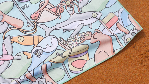 Brentos art beach towels are kind to the planet and made from 80% recycled polyster and 20% polymide.