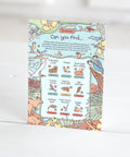 Every seek and find print now includes a companion card that shows you which species you need to find, the number of individual animals and their conservation status.