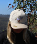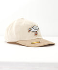 Who’s ready for a snack? This two-tone sand and beige coloured dad hat captures a seagull’s dream moment... he’s spotted a chip, and he’s goin for it! With a seagull patch on the front and a cheeky chip on the brim, it’s a classic hat for beachside fish and chip sessions.