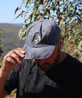 I wanted to make a dad hat that screams 'DAD', so I drew a koala pushing a victa and popped it on a navy acid wash. Perfect for Sunday lawn mowing sessions. Goes great with a squirt of sunscreen and a cold froth.